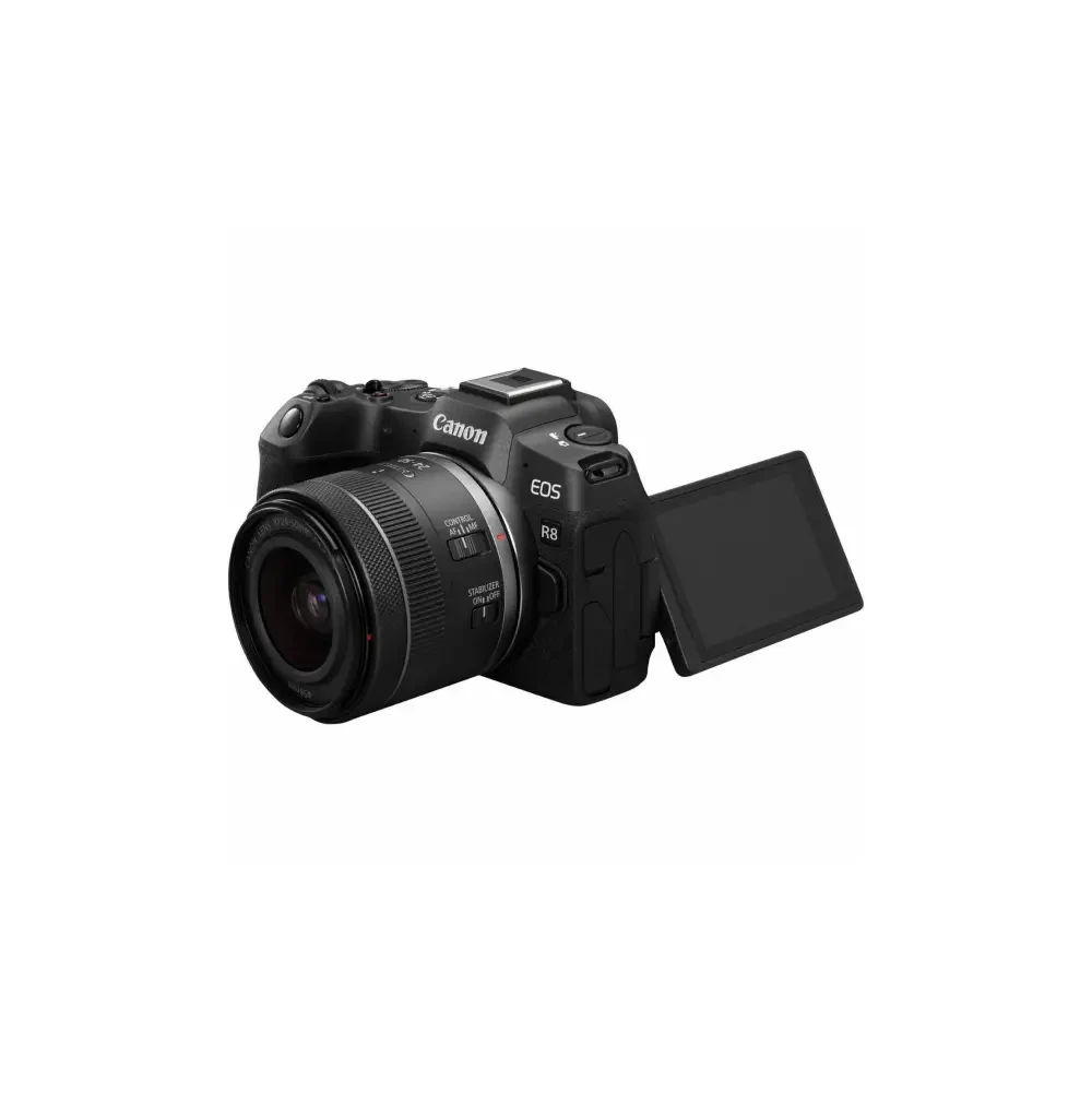 Description: Capture stunning images and videos with the EOS R8 Creator Kit, perfect for content creators. Specifications: - Camera: 24.2 MP - Lens: 15-45mm Standard Uses: Ideal for photography and videography.